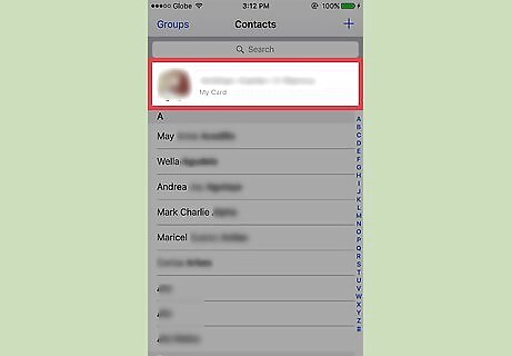 Select your name. Your "Card", which stores your phone number, address, and other information, should be at the top of the Contacts page.