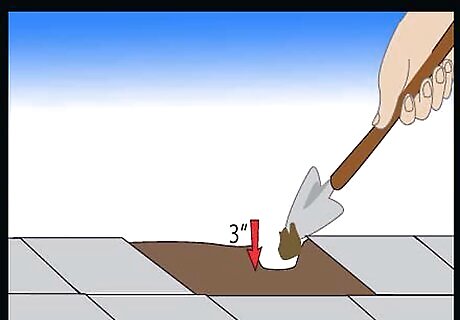 Dig down into the ground about 3" (If you're not that strong, rent a "Bobcat" (a small excavator), to do the job.