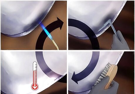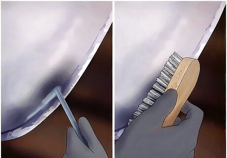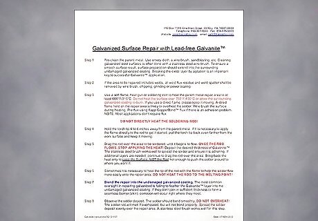 Pre-clean the parent metal. Use these items: emery cloth, a wire brush, sandblasting, etc. Cleaning galvanized steel surfaces is often done with a stainless steel wire brush. To ensure a smooth surface result, surface preparation should extend into the surrounding undamaged galvanized coating. Breaking the oxide layer by agitation is an important key to successful galvanizing repair. If the area to be repaired includes welds, all weld flux residue and weld spatter shall be removed by wire brush, chipping, grinding or power scaling.