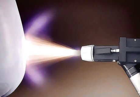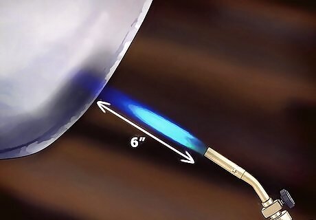 Hold the torch tip 4 to 6 inches (10.2 to 15.2 cm) away from the parent metal. If it is necessary to apply the flame directly to the rod to get it started, pull the torch tip back even farther from the work surface and keep it moving.