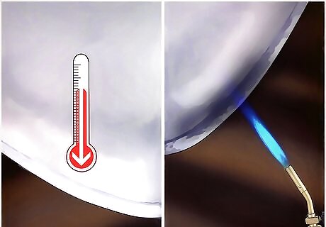 Use a soft flame, heat gun or soldering iron to heat the parent metal repair area to at least 600°F/315°C. Do not heat the surface over 750°F/400°C or allow the surrounding galvanized coating to burn. If you use a direct flame, keep it moving. A direct flame held on the repair area is likely to overheat the solder. Wire brush the surface during heating. Pre-flux using flux if there is an adhesion problem. NOTE: Many applications do not require flux.