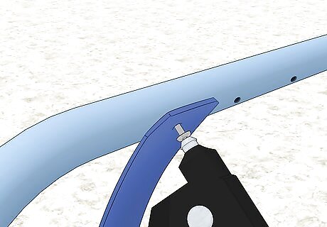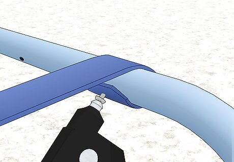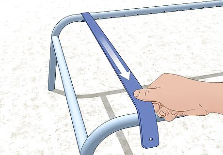 Attach the fastener to the frame. While the strap is still hot, approach the frame from underneath. Push the rivet into the hole in the frame and bring the strap around the outside of the frame. If the rivet is difficult to insert, use a rubber mallet or hammer to tap it in.