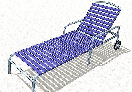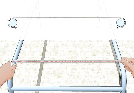 Pull the strap. Using one hand to detain the chair, grab the end of the strap with the other. Stretch the strap evenly and steadily over top the opposite side of the chair.