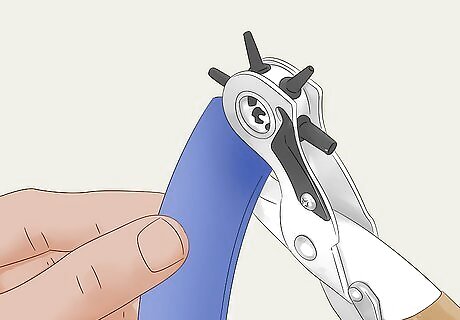 Drill or punch holes for rivets. Using a leather punch or and electric drill with a 3/16" bit, carefully drill a hole in the center of the strap, 1/2" from the end of the strap. Make sure to drill a hole on both ends.