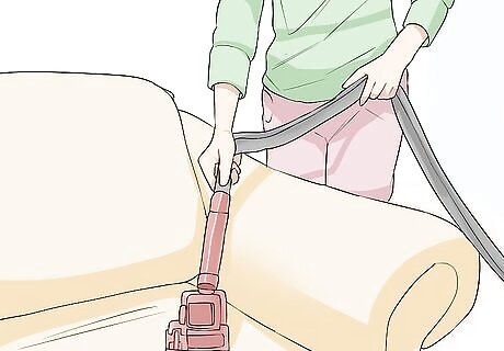 Spot-clean your sofa and wipe down any hard surfaces. Using a baby wipe, try to remove any surface stains or dried on substances. Also, be sure to wipe down any hard surfaces, such as legs or wooden frames.
