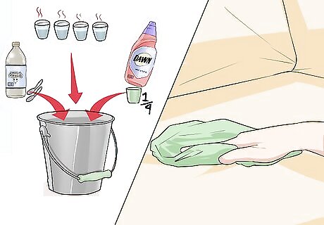 Gather the necessary materials. Sometimes your sofa may simply need a good cleaning! Additionally, you should always clean your sofa before covering it. You can purchase commercial upholstery cleaning products at most stores, however, you may already have some great products at home. You will also need a vacuum cleaner, and a steam-cleaning vacuum is optional. Baby wipes are ideal for both spot cleaning and wiping down hard surfaces. White vinegar can help to lift out stains. Laundry detergent can be mixed with warm water to make an effective cleansing solution. If you don’t have laundry detergent, you can substitute a mild dish soap. Expert Answer Q A wikiHow reader asked: "How do you deodorize a couch?" Katherine Tlapa Katherine Tlapa Interior Designer Katherine Tlapa is an interior designer, currently working as a Design Specialist for Modsy, a design service based in San Francisco. She also runs her own DIY Home Design blog, My Eclectic Grace. She received her BFA in Interior Architecture from Ohio University in 2016. Katherine Tlapa EXPERT ADVICE Answer from Katherine Tlapa: Katherine Tlapa, an interior designer, advises: "Sprinkle the couch with baking soda until it is covered, let it absorb for at least 12 hours, then vacuum it off. You may have to scrub the sofa and vacuum a few times to get all of the powder off. You can also wash the cushion covers in the washing machine. If they don't come off, you can steam clean your couch and spray it with deodorizing room spray."