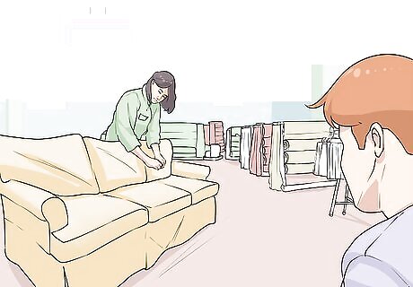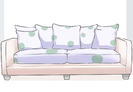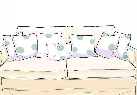 Add throw pillows and a throw blanket. To easily revamp the look of your sofa cheaply, you can use throw pillows and/or a throw blanket to finish the look. You can find these items at big box or furniture stores, or look at thrift stores or resale shops to stick to your budget.