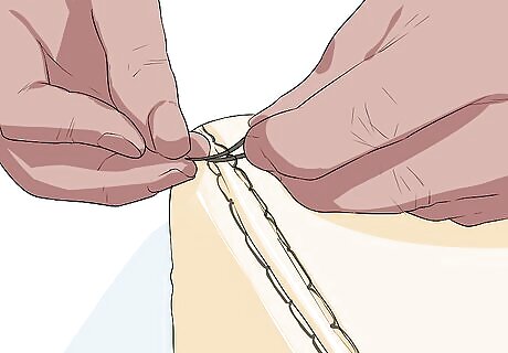 Add a few stitches if desired. If you are comfortable with a little hand sewing, adding a few stitches on either side of your sofa can help secure the bed sheets and keep them in place. Using a needle and thread, add a few basic stitches wherever the bed sheets end (on the arms and on the edges of cushions). If you would like to remove this bed sheet later, these stitches can easily be removed.
