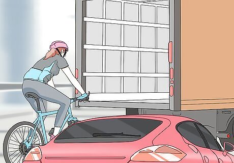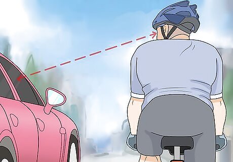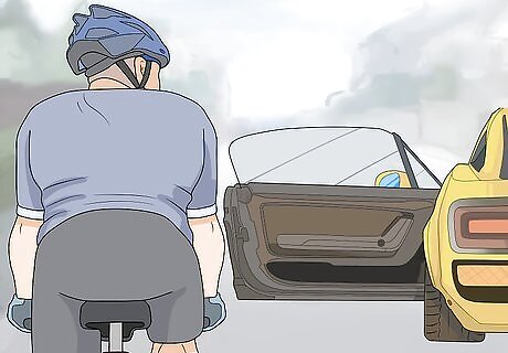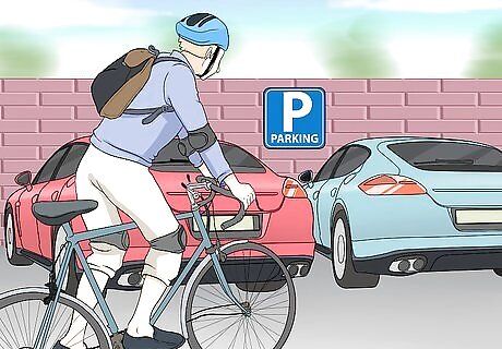 Watch ahead for car doors. This is particularly important if you're riding near parked cars. A door could open at any point, so be vigilant. If possible, put space between your bike and parked cars to keep you from running into one. Aim for about 3 feet (0.91 m) of space between you and parked cars. Avoid weaving back and forth from the curb through parked cars, as this creates problems with the traffic behind you.