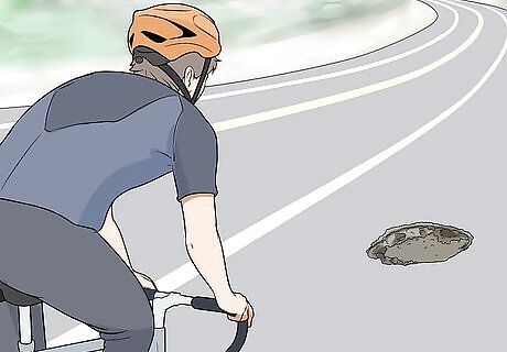 Be on the lookout for road hazards at all times. If you hit a pothole, it could throw you into the path of a car, so always be looking ahead at the road. Other hazards can include things like toys, debris, and grates in the road. Train tracks can also be hazardous for bikes.