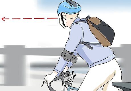 Keep your eyes ahead of you. You can't worry much about the traffic behind you because if you are constantly looking back, you won't see what's ahead. Accidents happen most often when bicyclists cross paths with drivers at intersections. If you keep your attention ahead of you, you're more likely to prevent an accident.