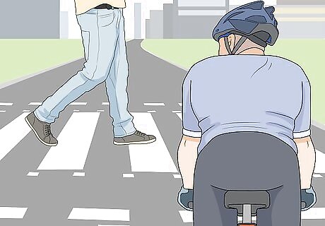 Give way to pedestrians. Just like when you're in a car, pedestrians still have the right-of-way. That's true whether you're riding in a bike lane, on the street, or on the sidewalk. If you see a pedestrian trying to cross, let them go first to avoid causing issues with traffic flow. Similarly, if you're turning right, you have to let pedestrians go by on the crosswalk before turning.