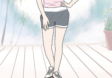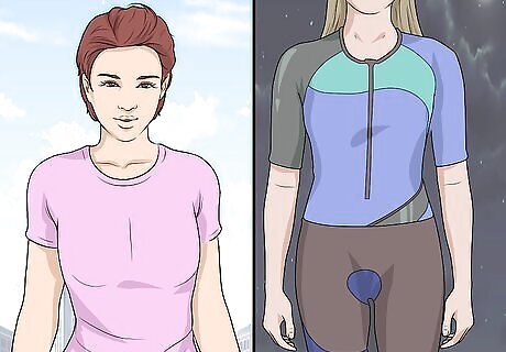 Wear comfortable clothing that won't get in the way. Make sure you are wearing shoes, pants, and tops that are comfortable and suit the bicycle. Don't wear anything too loose that could get caught in the wheels. Pick shoes without heels that have non-slip soles. Trying to ride a bicycle in heels will give you less control over the bike, which could result in an accident.