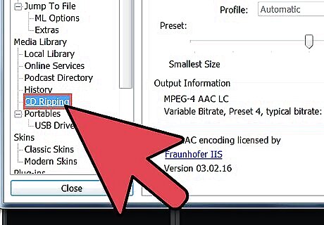 Scroll down the panel on the left side of Winamp’s Preferences window. Look for the “Media Library” directory. Under Media Library, click on "CD Ripping."