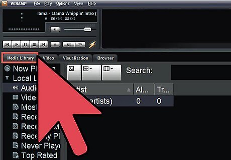 Click on the Media Library tab. This is found in the upper-left area of the window, below the media control buttons.