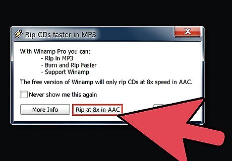 Right click on it and select “Rip Audio CD” from the pop-up menu. A small window labeled “Rip CDs faster in MP3” will appear. The window only notifies you that the free version of Winamp only rip CDs at 8x speed. To continue, simply click “Rip at 8x in AAC.” If you don’t want to see this window the next time you rip a CD, simply put a check on “Never show me this again.”