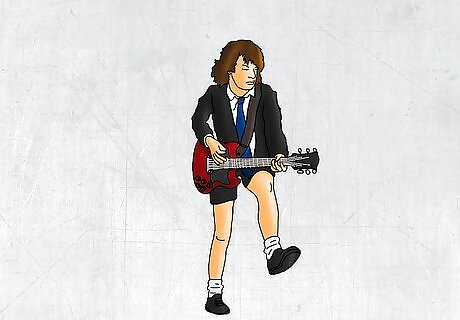 Solo in Pentatonic and Hexatonic. He's a blues man! Before you start your solo at the beginning of "Thunderstruck" (or any other solo), raise your pick into the air as high as you can reach. Show off your weapon, the key that unlocks the vault of all great rock. During any guitar solo of Angus', you will notice him doing one of his signature dances. But his most popular by far is the one where he lifts his heels into the air, keeping his toes on the ground. (For all of you marching band people, this is just like marking time.) Start with either you left or right foot, but once you start, continue in this sequence: Left, Left, Right, Right, Left, Left, Right, Right...and so on. (This is going to be hard for marching band people, who have it drilled into their heads to go Left, Right, Left, Right...) Angus makes this dancing look easy but it is incredibly difficult to do so while playing guitar. The fact that he never misses a single note in live concerts while doing spectacular stage stunts is a testament to his immense skill.