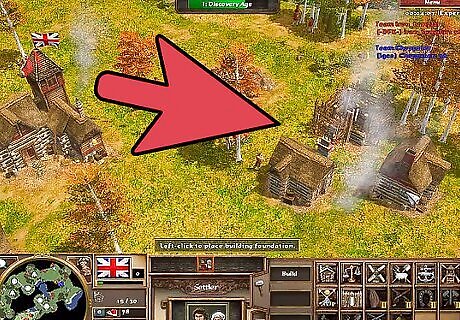 Build houses. Put 4 on gold, 11 on food, and 3 on wood. Keep making Villagers and Musketeers.
