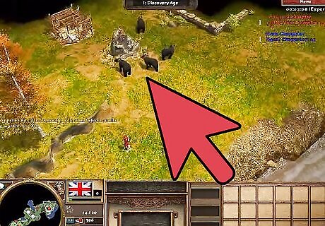 Collect all Crates fast. Put all villagers to food (hunting using the hunt technique). Build one house and Market.