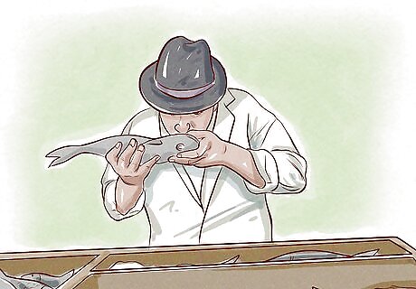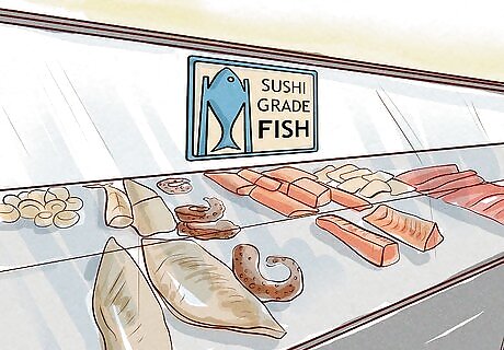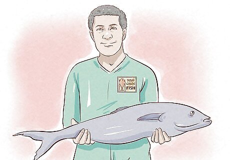Shop at good fishmongers. If you intend to make your own sushi, it is important purchase fish from a reputable fishmonger that sells high quality, sushi-grade products. Look to see whether the fish is properly packed with ice. Pick fish that is firm and shiny. Make sure your fishmonger properly freezes and stores the fish. If the fish smells too “fishy” or has a bad odor, you should avoid it. Make sure your fishmonger knows that you want to eat the fish raw.