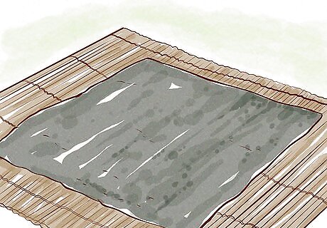 Place half a sheet of nori on the bamboo rolling mat. Make sure the shiny side of the nori is facing down. Spread a quarter inch layer of rice over the nori. Add a strip of tuna to the rice. Lift up the bamboo mat and roll it away from you. When you get to the end, press down on the bamboo mat to compress the sushi roll.