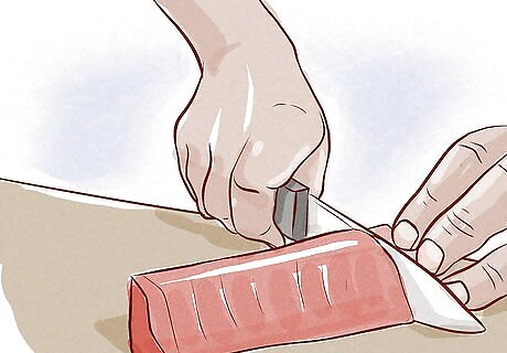 Cut the fish into eight-inch-long strips. Cut your fish fillet, such as tuna, into thin strips. They should be eight inches long.