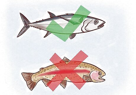 Pick saltwater over freshwater fish. In order to avoid fish that has been infected with parasites, you should always pick saltwater over freshwater fish. There is a higher risk that freshwater fish has been infected with parasites. Instead of freshwater fish like trout or sturgeon, pick saltwater fish like albacore, cod, eel or tuna. Farmed fish is raised in a controlled environment and may be safer to eat.
