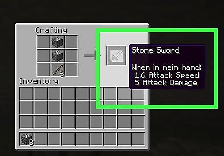 Craft essential tools. You don't need to carry a furnace and 23 different types of potato with you when you go exploring, but you should have the following items on hand at all times: Pickaxe - Pickaxes are crucial in helping you move through obstacles and gather valuable resources. Sword - You'll need a sword to help fight off enemy mobs. Axe - Axes provide the most efficient way to chop blocks of wood. Shovel - A shovel isn't strictly mandatory, but it will help you navigate through large sections of dirt, sand, and gravel without damaging your pickaxe. Map - Having a map isn't mandatory, but it will help you document your world as you explore it.