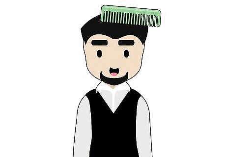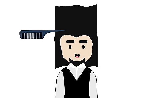 Part your hair down the middle. Slide the handle of a rat-tail comb through your hair, from your hairline to the back. Brush the left side to the left, and the right side to the right. Clip the right side out of the way.