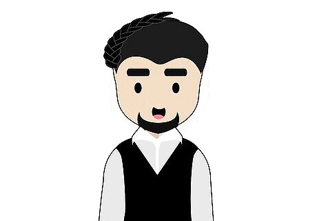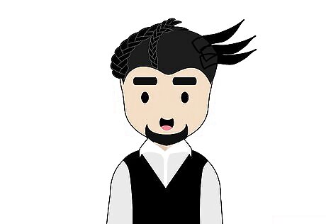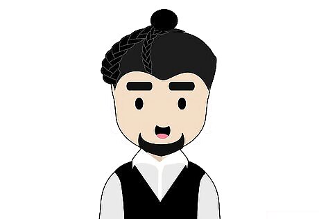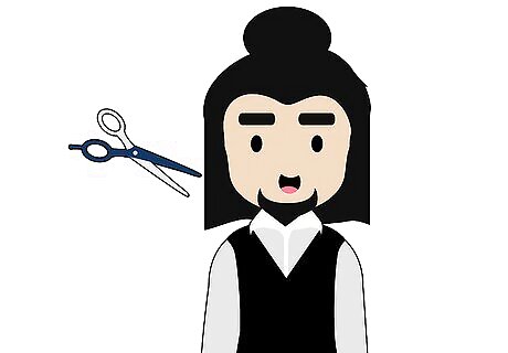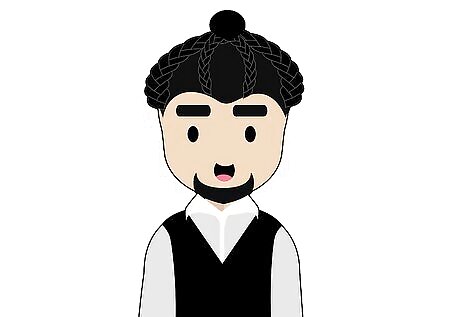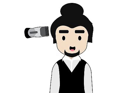Section off the top part of your hair. Use the handle of a rat-tail comb to create two deep side parts just above your eyebrows. They should be aligned with your temples. Connect the parts at the back-crown of your head. Gather your hair into a bun and secure it with a clip of hair tie. Do not include the first ¼ to ½ inch (0.64 to 1.27 centimeters) of hair at your front hair line; leave it out of the bun. Make the parts as neat as possible.