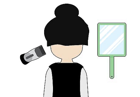 Trim your hair down; if needed. If your hair is the same length all over, you will need to trim down anything not gathered into the bun. Don't worry about making it perfect; you will be fading it in a moment. Plan on getting the rest of your hair down to ½ to 1 inch (1.27 to 2.54 centimeters) long.