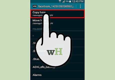 Head to the folder where you want to save it. In the example image, save it to /storage/sdcard/