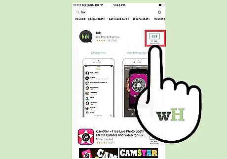 Download Kik. Go into the app store or Google Play Store. Type Kik into the search bar. It is the app with a black and green message box icon. Verify your account information and download the app.