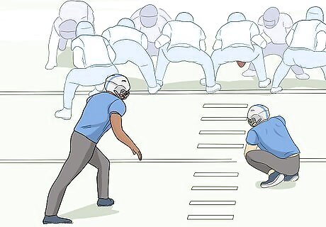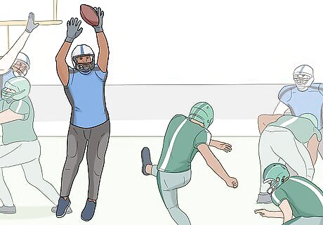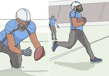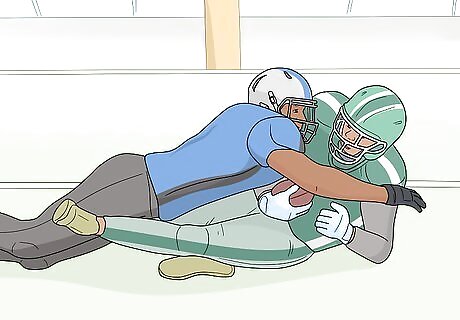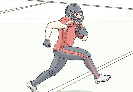 Advance down the field by running or passing the football. The goal of your offensive team is to advance the football down the field to set up a scoring opportunity. Pass, or throw, the football to a receiver to catch it and move forward. You can also advance the football by running as far as you can until you’re tackled by a defender or pushed out of bounds. Moving, or driving, the ball down the field will give your team a better chance to score a touchdown or kick a field goal to score points. The goal of the other team’s defense is to prevent your offense from successfully moving the ball forward. Whenever a player holding the football is tackled, or taken down by the opposing team, then the play stops and the next play will begin where they were stopped.