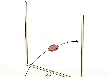 Advance the football to be within 52 yards (48 m) of the goalposts. A football field is 100 yards (91 m) long with an end zone that adds an extra 10 yards (9.1 m). You also need to allow 7 yards (6.4 m) from the line of scrimmage so you can kick the ball without being blocked or tackled. In order to kick a field goal, you need to move the ball to a location where you or your team’s kicker can kick the ball through the goalposts. The field goal range will vary based on kicking ability, weather conditions, and strategy. For example, if the football is on the opposing team’s 20-yard-line, then you would need to kick the ball at least 37 yards (34 m) in order to reach the goalposts. The average field goal range for a professional football team is within 52 yards (48 m).