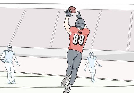 Catch the football in the endzone to score 6 points. If you catch the football in the endzone, secure control of the ball in your hands or arms, and touch your feet or any part of your body other than your hands on the ground in bounds, then you’ll score 6 points for your team. You can also catch the football and then run it into the endzone for a touchdown to earn 6 points. If you drop the ball, or it bounces off on the ground as you’re catching it, the score doesn’t count. In professional football, the receiver must catch the ball with 2 feet in bounds in the endzone, in collegiate and high school football, they must catch the football in the endzone with at least 1 foot in bounds in order for the score to count.