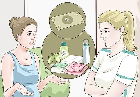 Deal with financial concerns. It’s normal to be concerned about affording a new baby. However, financial difficulties may cause a significant amount of stress and contribute to depression. Before the baby comes, create a budget to help you feel more in control and reduce finance related stress. Try to make small changes to save money. For example, you can purchase generic items, watch for sales, clip coupons, buy frequently used items in bulk, or limit entertainment purchases, such as eating out or going to the movies. Consider DIY options to save money, such as making your own baby food or making reusable cloth diapers. Ask friends and family if they would be willing to help you with childcare after your baby is born. Friends and family members may also be willing to donate items to you such as baby clothes, a car seat, a baby monitor, or a stroller.