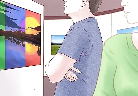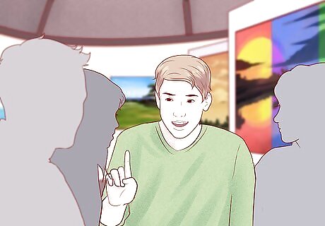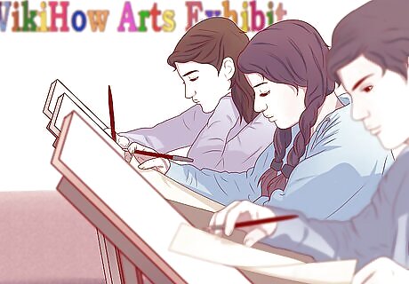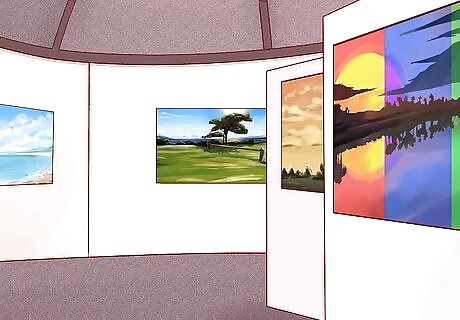 Hold a local exhibit at an art gallery to display your work. Art galleries host events to show off new artists' artwork that can help you get your name into the art world. Local galleries enjoy loyal and steady art lovers, making them ideal places to build a following. Even if you don't grab the attention of important art folk, you'll be spreading your name to those who may know said important art folk. These galleries also tend to have an established network of art promoters who love to support budding artists. Because they are often small, they tend to pay special attention to individual artists. They also will focus on bringing in interested collectors, practically advertising your work for you. While galleries are great, know that you aren't limited to them to showcase your work. Cafes, office lobbies, schools, and other places of business often host mini exhibitions from local talent. This is a great way of exposing your art to casual art fans; remember, not everyone goes to art galleries, but they do grab the occasional coffee. You'll most likely have to share a portion of the profit with the gallery. They are helping market your name, which does come with a price. Don't worry; this is a small price to pay for getting to share your work.