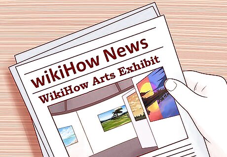 Write or email your local radio stations, newspapers, and other publications. Inform your local press about your exhibitions and inquire about whom you need to contact to get an editorial feature in your local paper. Local media love to feature profiles of unique characters from the area. Since artists are often associated with terms like "unique" and "special," it will make sense for reporters and bloggers to cover you for a story. Every time you have an exhibition, you've won an art contest, or you've completed a new project, send out a little press release to the local media. You could even offer them free tickets to your exhibition. Don't be intimidated by the media. They're just normal people like you and me, and they may be eager to highlight up-and-coming talent. Being featured in local media will help you remain front-and-center in the local community's gaze.