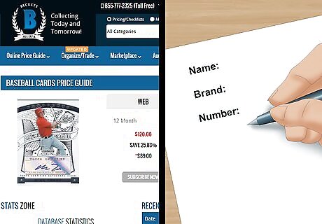 Consult a Beckett price guide. Beckett is a company that tracks down the value of cards for serious card traders. To use their service, write down the baseball card's name, brand and number. This is not the player's number; it's the card's name. You can either use an online edition or find a hard copy to determine a rough estimate. For example, rookie Barry Bonds Topps card ID number is 12. The market has it listed for $12 USD.