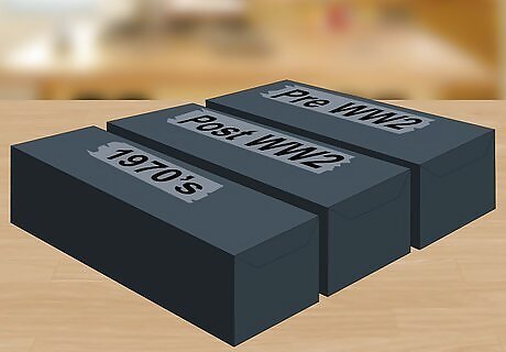 Organize your cards. To better determine the value of your cards, place them into three different categories. The first category is modern cards, or cards that were produced from the 1970s to the present. Then your next category is post-war cards, or cards produced between 1948 and 1969. Your last category of cards, if you have any of these, is call pre-war cards, or cards produced before WW2. If you find that many of your cards are modern cards, you might not get much money for them. Modern cards were produced at the highest volume, so their value is very small.