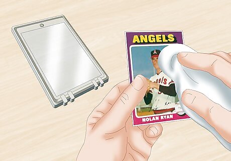 Present the card. If you have a few cards that you want to sell individually, you’ll need to present the cards in a marketable fashion. Use a magnetic card holder to present the card as a higher end card. Wipe off any loose debris before placing the card in the holder. It is generally recommended to only sell cards individually if they are rare cards. The market usually buys cards in a collection.