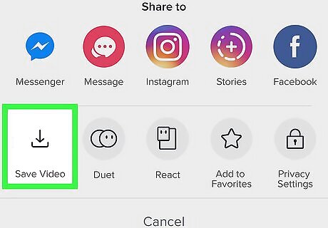 Tap Save Video. It's in the second row of icons. This downloads the video to your Android. Because some TikTok users change their privacy settings to disable downloads, you may not see this option for all videos. The downloaded video will have the TikTok logo as well as the account name that posted the video like a watermark.