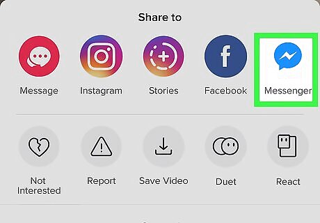 Open TikTok. This app icon looks like a white, blue, and red music note on a black background. You can find this on either your home screen, in the apps drawer, or by searching. If you don’t have TikTok downloaded, you can get it for free from the Google Play Store Android Google Play. Use this method to share the direct URL of a TikTok video to a Facebook Messenger contact. The recipient of the URL can tap the link to open the video in their browser (or in TikTok, if they have it installed). If you want to download the video file and send it through Messenger, see the "Attaching a Video File" method instead.