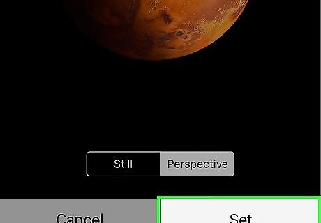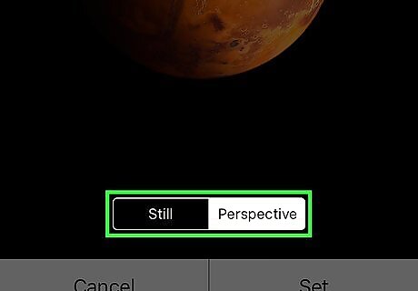 Select a display option. Near the bottom of the Wallpaper Preview screen, you should see a couple of display options: Still - Displays the photo as-is, with no movement or perspective zoom occurring. Perspective - Shifts the photo slightly when you move your iPhone. Live - Plays a short video when you tap and hold the screen. Only applies to "Live" photos and Apple-created templates.