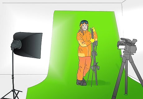 Position your actors or subjects during the lighting process. Whether you are recording video or photographing your subjects, ask them to stand in the center of the frame. Ask them to stay in this position during the lighting process and camera set up. Determine where your actors will be standing for the majority of the shoot, and ask them to stand in several different positions if they will be moving around a lot. Make sure your actors are aware of the space, and that they’re careful to never move their body outside of the green screen. Have your actors stand 8 to 10 feet (2.4 to 3.0 m) away from the screen, in order to avoid shadows.
