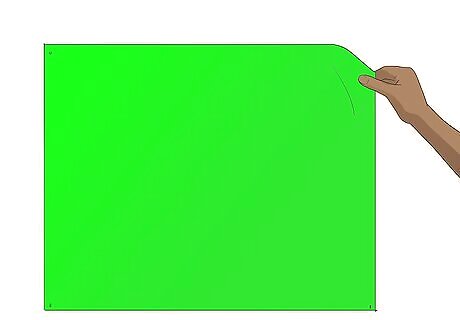 Purchase green screen paper for a cheaper option. The cheapest way to set up a temporary green screen is to buy neon-colored construction paper. You can tape, tack, or glue your construction paper to a wall, and set your scene in front of it. If you need to cover a whole wall, you can tape multiple poster boards together using clear packing tape.