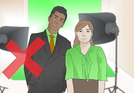 Avoid green clothing or jewelry. Make sure your actors aren’t wearing anything green, since ths video editing software might try to replace that color as well. Additionally, avoid reflective jewelry or glasses, since they might cause issues in post production.