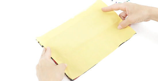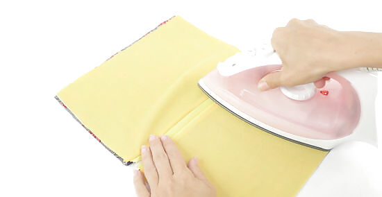 Open the fabric layers and iron them on low heat. Lay the fabric on your work surface so the layers are open like a book. The zipper should be facing up and be in the center. You'll see the outer layers of fabric facing up on both sides of the zipper with the liner pieces underneath them. Then run your iron over the fabric to smooth the layers.Did You Know? You should always check your fabric material to determine what heat setting you should use with the iron. This will prevent you from accidentally melting your fabric.