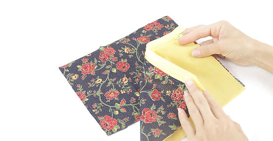 Place the zippered fabric piece on the remaining piece of lining. Take the other fabric lining piece and place it face up on your work surface. Then lay the piece of fabric you just sewed on top of the lining so the outer fabric and zipper are facing up. At this point, the lining pieces are stacked on each other.